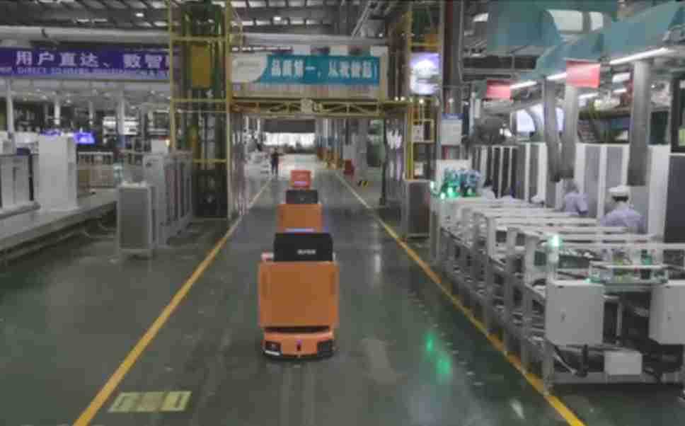 为车载冰箱物流配送打造的智能解决方案,,包含产中物流通过潜伏举升AMR搬运至线边,,产后成品物流智能仓储,,流程包含产中物流智能齐套入库,,,线边安灯叫料AMR智能配送至线边,,,成品入库、、、出库,,,,通过无人堆高车机器人,,,智能仓储管理替代人工作业管理,,,实现更高存储、、、更高效率、、、更具柔性化的解决方案。。。